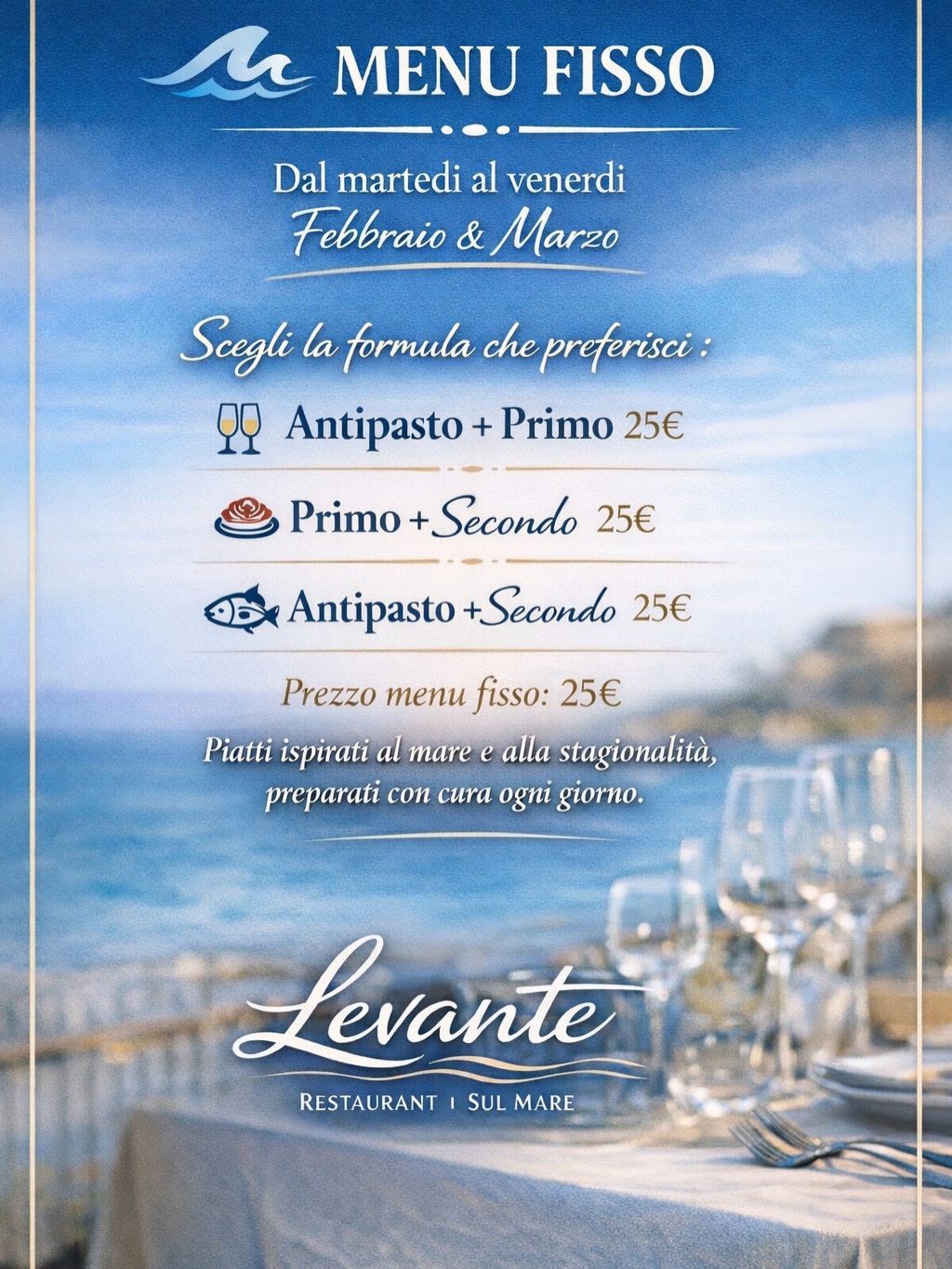 Levante nasce dal desiderio profondo di celebrare l'eccellenza della cucina italiana e mediterranea attraverso una prospettiva contemporanea. Il nostro progetto ha preso vita grazie all'incontro con lo Chef internazionale Giampaolo Flotta, la cui visione culinaria e preziosa amicizia hanno permesso di coniugare la solidità della tradizione con un’estetica ricercata e tecniche d'avanguardia. Siamo un team giovane e dinamico, animato da una costante tensione verso la perfezione. La nostra missione è semplice quanto ambiziosa: trasformare ogni ingrediente in un’emozione, garantendo ai nostri ospiti una qualità senza compromessi e un’esperienza sensoriale che sappia di casa, di modernità e di bellezza.